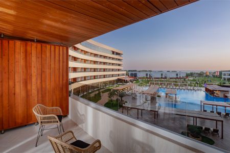 Просторный и стильный номер с собственной террасой, в котором вы найдёте все для роскошного отдыха. Здесь каждая деталь продумана до мелочей: аутентичный дизайн, уютная мебель, комфортабельная ванная комната, терраса с превосходным видом. Если вы цените возможность проводить больше времени на свежем воздухе - этот номер для вас.